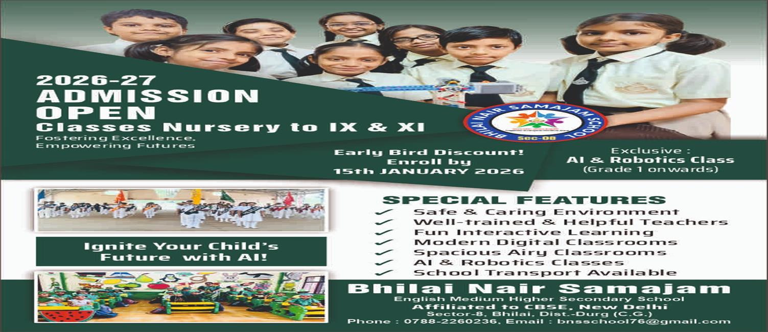Bhilai Nair Samajam English Med. Hr. Secondary School Sector - 8, Bhilai, was established in the year of 1976 with an objective of providing quality education to the children of all the sections of society. The school is affiliated to the Central Board Of Secondary Education, New Delhi. It also houses, an English Medium Middle school at Industrial Area Bhilai and a College at sector - 8 Bhilai. The school has modest resources which includes : 20 classroom, a well furnished school library, laboratories for Physics, Biology , Chemistry, Maths Computer labs and an open auditorium for promotion of other developmental activities. It has Eco - Club, Scouts and Guides, Red Cross Wing and Interact Club. Read More